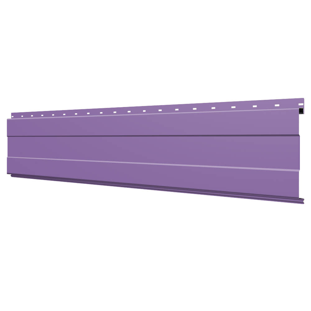 Линеарная потолочно-стеновая панель с ПОЛОСОЙ усиленная цвет RAL4005 Сиреневый применяется в качестве софитов для подшивы крыши, наружной и внутренней отделки потолков, стен, фронтонов фасада дома в Ханты-Мансийске.