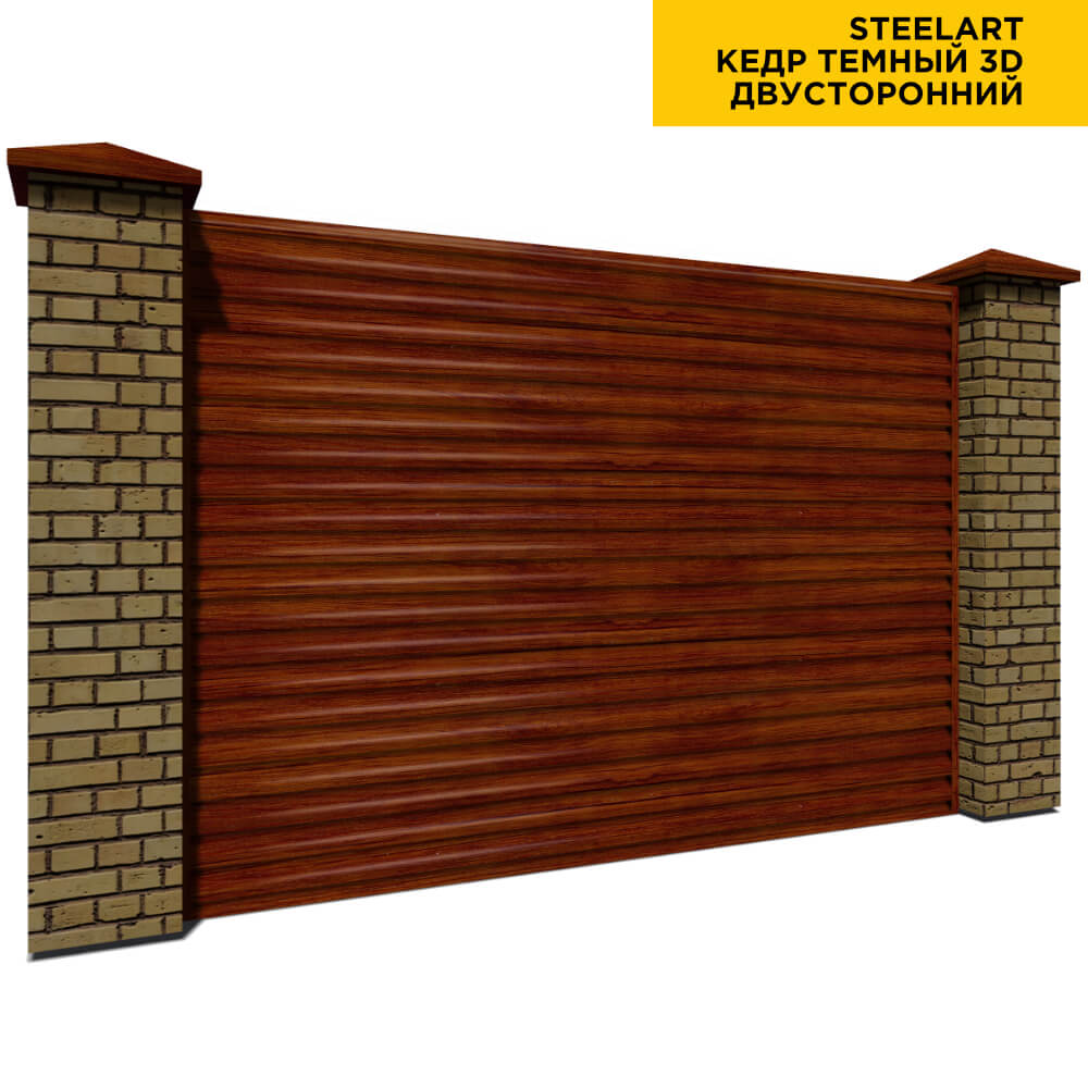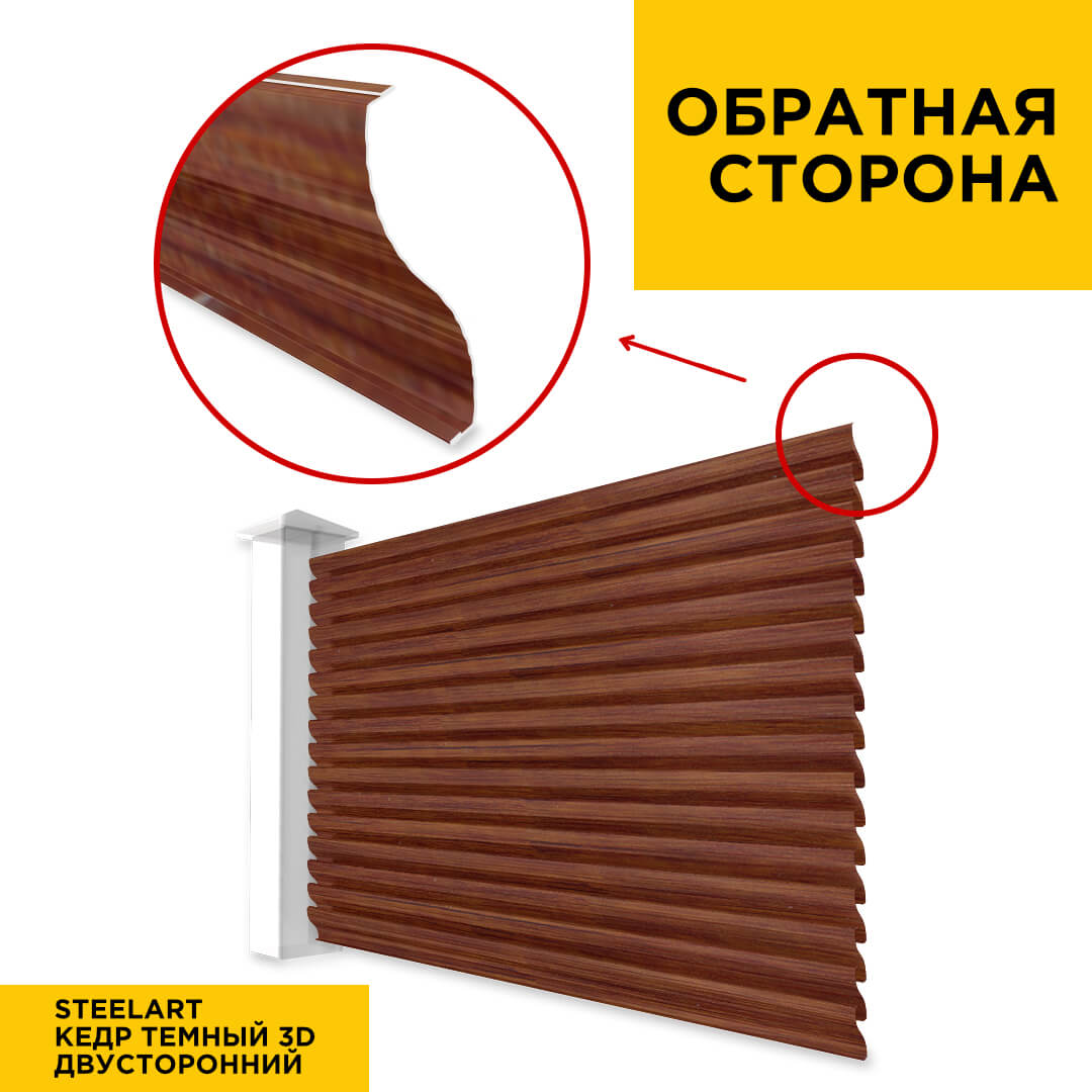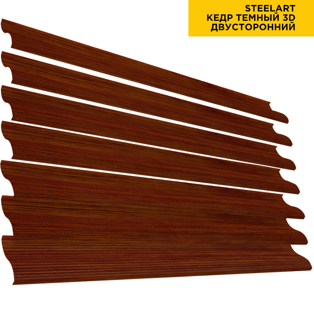 Ламель Еврожалюзи металлическая S-образная, цвет под дерево Кедр Темный 3D SteelArt Россия двухстороннее покрытие, длина любая кратно 1см под заказ - для забора-жалюзи, беседки, перголы в Ханты-Мансийске
