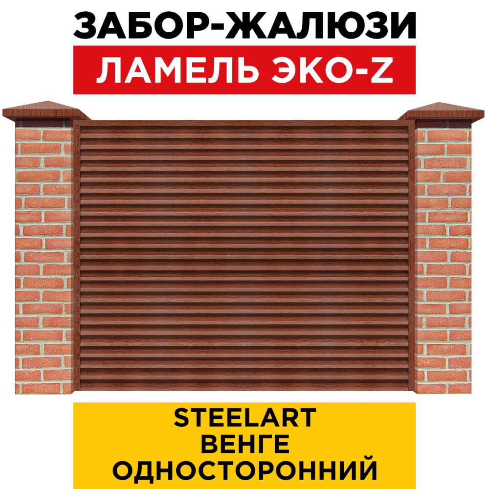 Ламель металлическая Z-образная простая ЭКО-Z, цвет под дерево Венге SteelArt одностороннее покрытие, длина любая кратно 1см под заказ - для забора-жалюзи, беседки, перголы в Ханты-Мансийске